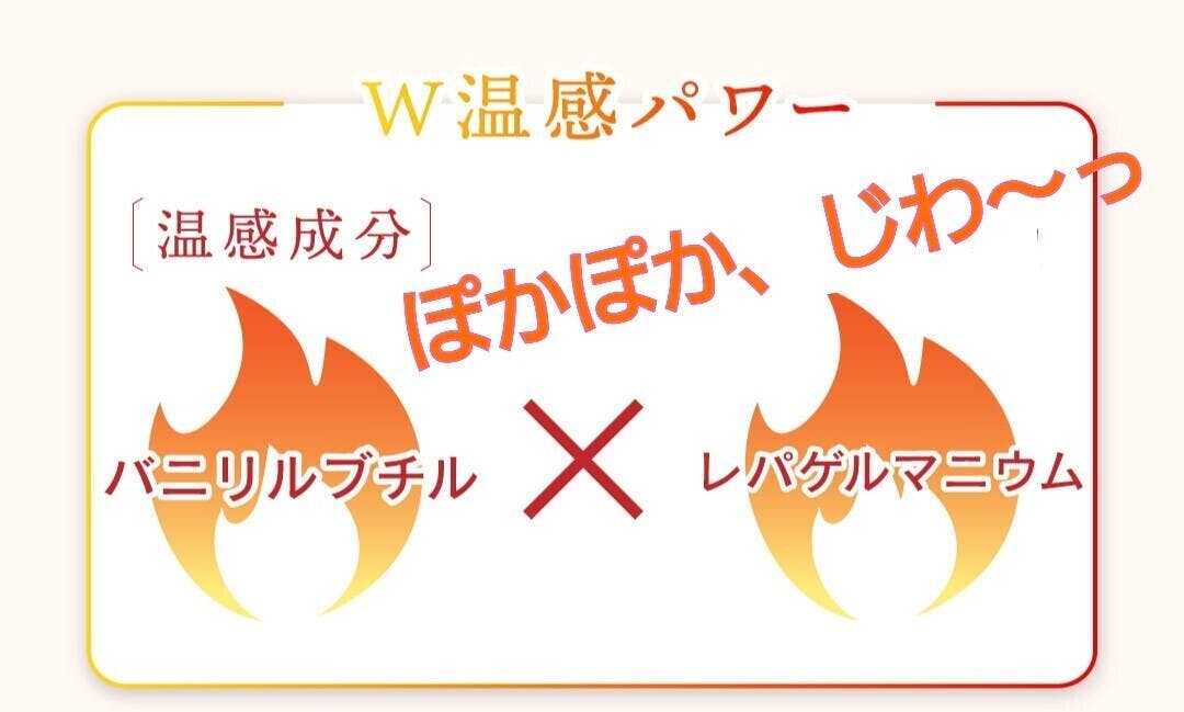 さらに塗りこんでいただくと、温感成分の「バニリルブチル」、