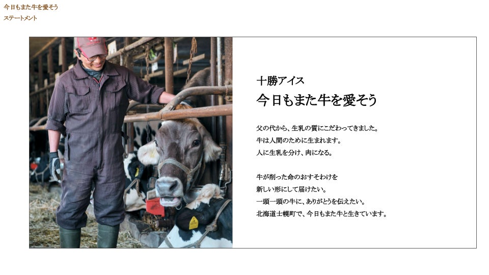 私たちが搾った牛乳の風味を守り作ってくれたアイスクリーム屋さん、そしてその思いをどう届けるかを一緒に考えてくれたデザインチームとタッグを組んで作り上げてきましたので、ぜひ一度私の思いを読んでみてください。