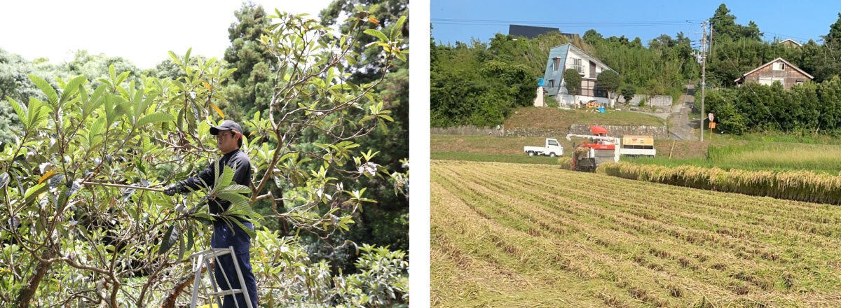 民宿以外にも田んぼやびわ農園も家族で作って経営しています。