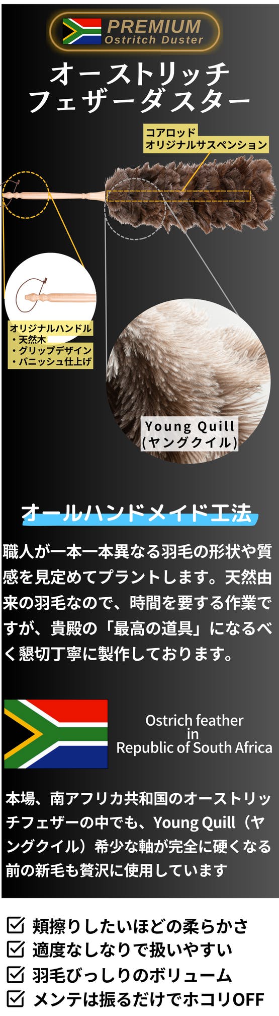 【素材】羽毛:オーストリッチフェザー(南アフリカ共和国産) グリップ:天然木