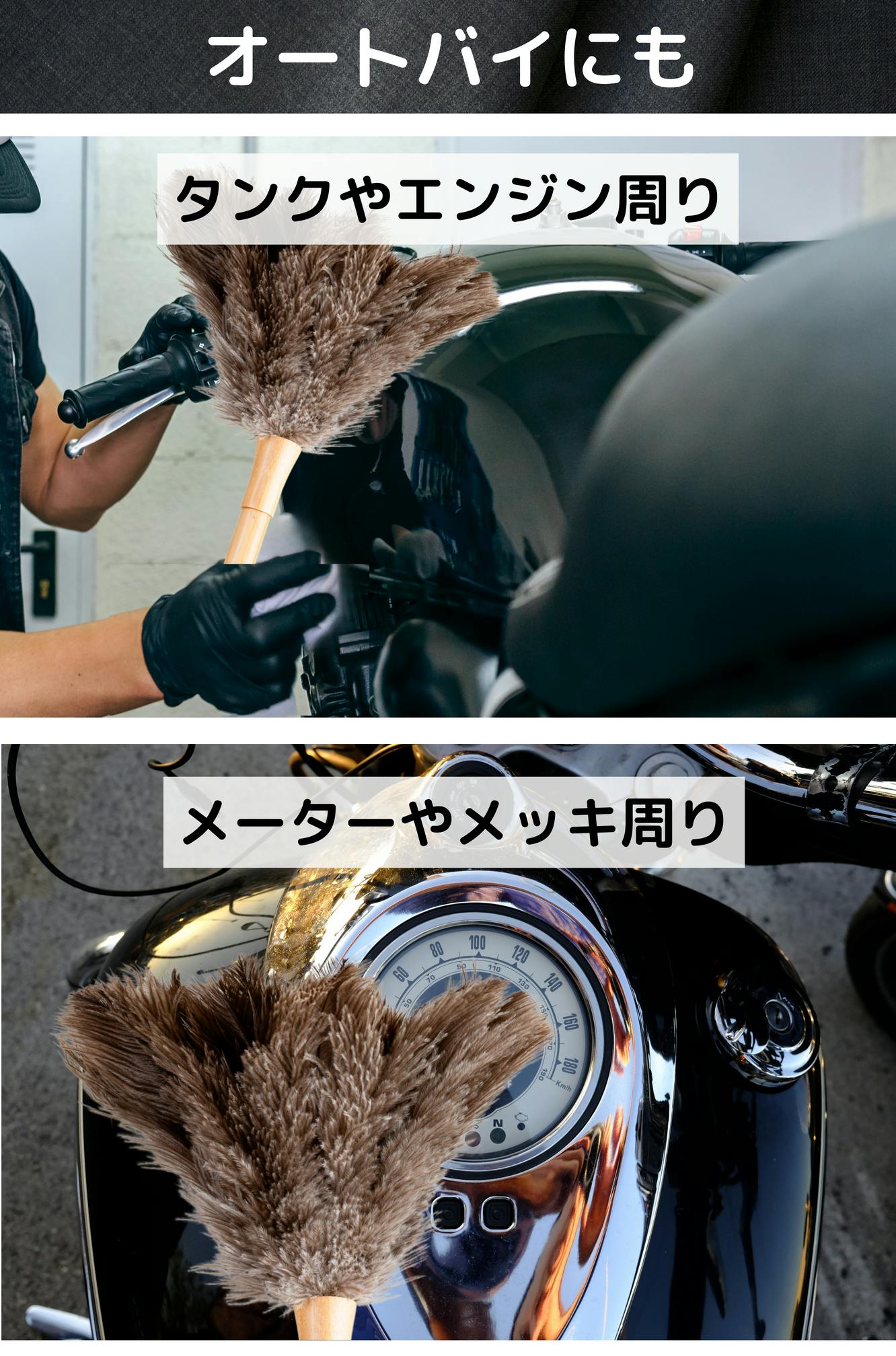 ・車のボディに対して、フェザーダスターを時折り回転させながら優しく撫でるようにホコリをはらってください。