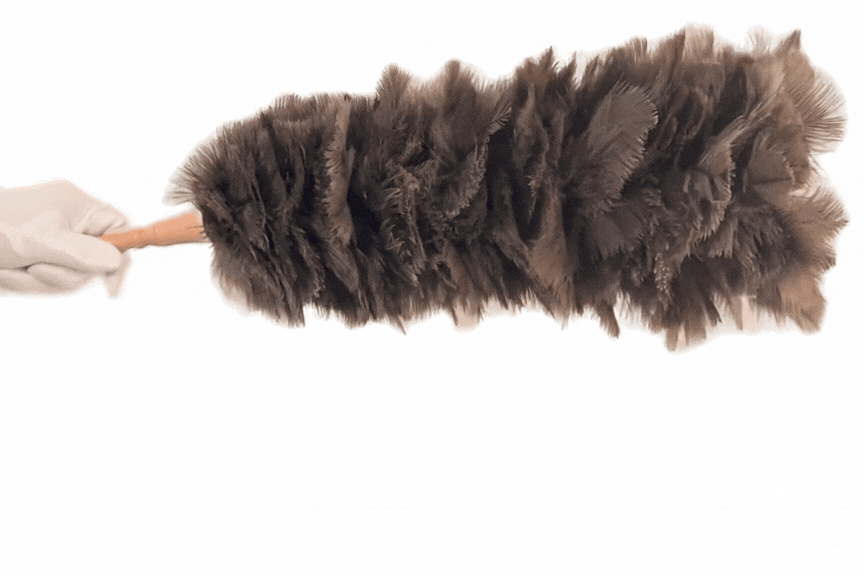常にフェザーダスターのクリーンな部分がボディに当たるように、本体を時折り回転させて圧力をかけずに軽くなでるだけで十分です。