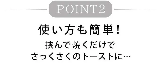 基本的な使い方は、はさんで焼くだけ。簡単にサクッと美味しい食パンを焼くことができます。