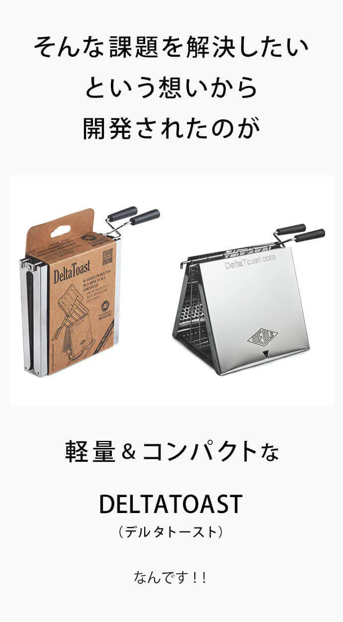 DELTATOASTなら、キャンプでサクッと焼けた香ばしい食パンが楽しめます。