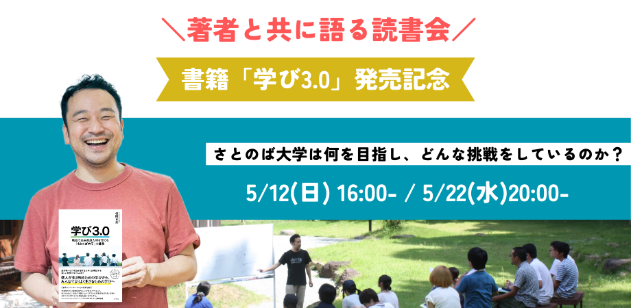 2024/04/16 11:29本クラウドファンディングにて皆さまに応援頂き、先日4月10日、書籍発売を実現することができました。改めましてご支援いただきました皆さま、誠にありがとうございました!予測不能な未来に向けた、新たな教育の潮流を提案する書籍『学び3.0-地域で未来共創人材を育てる「さとのば大学」の挑戦』刊行を記念し、著者である信岡良亮と共に語り合う読書会イベントを開催いたします。さとのば大学を応援頂いている皆さまをはじめ、新しい教育を目指す皆さまと共に作る時間となれば幸いです。詳細・お申込はこちら>>https://peatix.com/event/3917412/view■日程以下のいずれかの日程よりお選び下さい。①5月12日(日) 16時~17時半②5月22日(水) 20時~21時半■会場オンライン(Zoom)※お申込の方にZoom URLをお送りいたします。■定員各回20名程度■参加費用1500円/人※書籍出版クラウドファンディングにて「読書会イベントプラン」をお選びいただいた方は、無料でご参加頂けるクーポンコードをメールにてご案内しております。■当日の流れ(予定)・オープニング・著者:信岡が語る、本書への想い・参加者の皆さまとの感想シェアタイム詳細・お申込はこちら>>https://peatix.com/event/3917412/view もっと見る