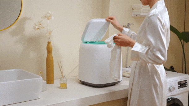 そして、出会ったのがMOYUのミニ洗濯機でした。その洗浄力、静音性、そして高度な安全性能に感銘を受け、日本のお客様にもこの素晴らしい体験を届けたいと強く感じました。また、この製品は省スペースでありながら7Lという大容量を持つことで、家族での使用にも適しています。