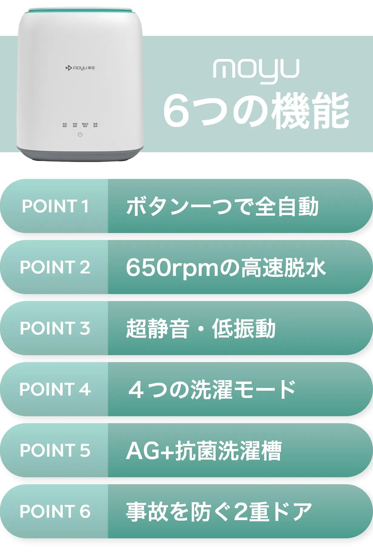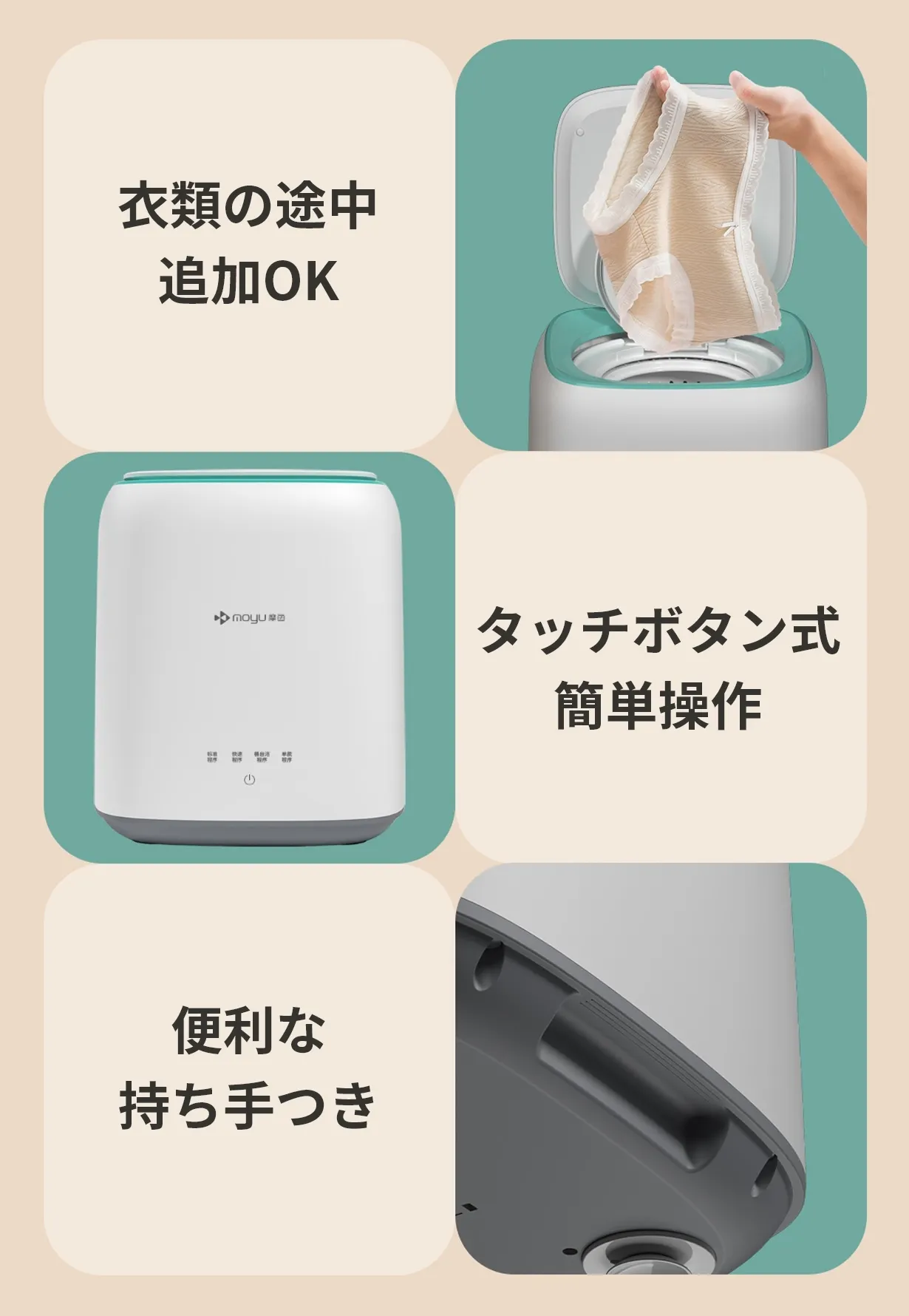 MOYUは、日本を拠点とする先進的な家電製造企業で、特にミニ洗濯機の分野で高い評価を得ています。我々の製品は革新的なデザインと最先端の技術を組み合わせ、忙しい日常生活における洗濯のストレスを軽減することを目指しています。