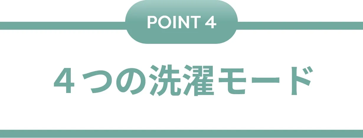 日常服用の標準モード(26分)・オシャレ着用の快速モード(19分)・洗濯槽のお掃除用の槽洗浄モード(15分)・脱水だけしたい時用の脱水モード(7分)の4つの洗濯モードが搭載され、最適な洗濯方法を選んで稼働させることができます。
