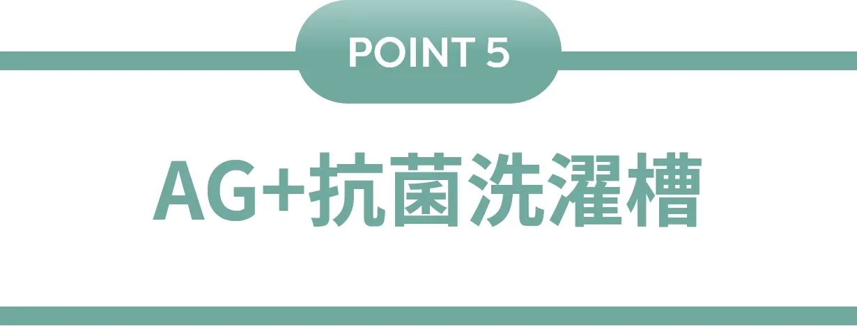 MOYUの洗濯槽はAG+成分が配合されており、99.99%抗菌。長期的な抗菌効果が持続し、洗濯槽から衣類への細菌の二次感染を防ぎます。