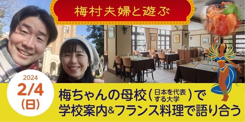 ☆梅村夫婦と梅ちゃんの母校(有名大学)でフレンチを囲んで語り合うツアー☆