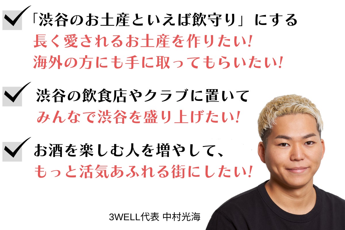 ECから販売を開始し、ゆくゆくは渋谷の飲食店さんや店頭販売も行い、渋谷のお土産となるような製品を目指しております。飲守りの開発でこだわったポイントは3つ!