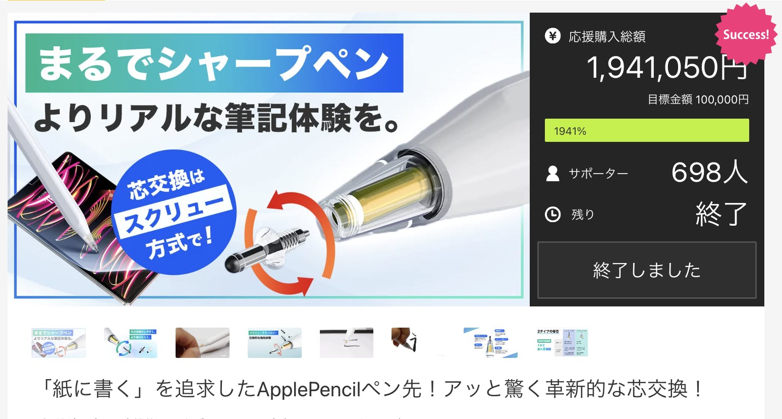 第一弾「pencil tips」は627万円、2,494人の支援者を集めることに成功しました!