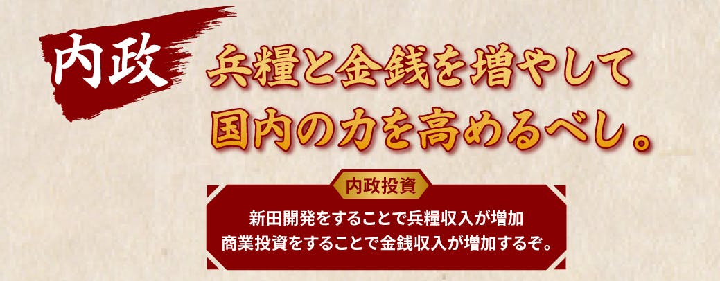 戦国WARRIORの基本プレイコマンドは内政、軍事、外交の三つでございます。