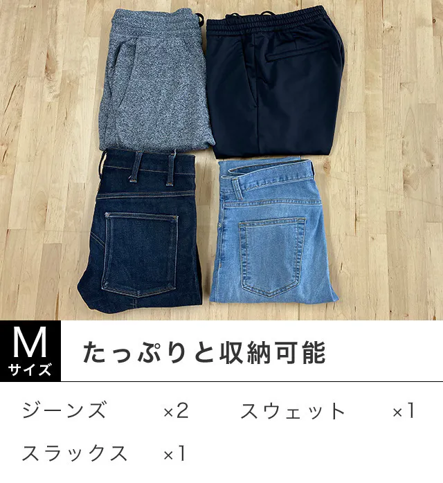 ファスナーで衣類を圧縮して収納することで、スーツケース・旅行バッグのスペースを半減できて、その分同じ荷物量でも小さいスーツケースや旅行バッグに変更できます。