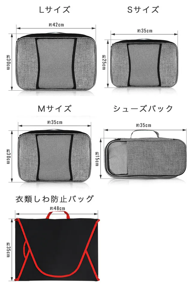 複数の収納バッグでの仕分けにより、スーツケース・旅行バッグ内の衣類の整理整頓をすることができます。