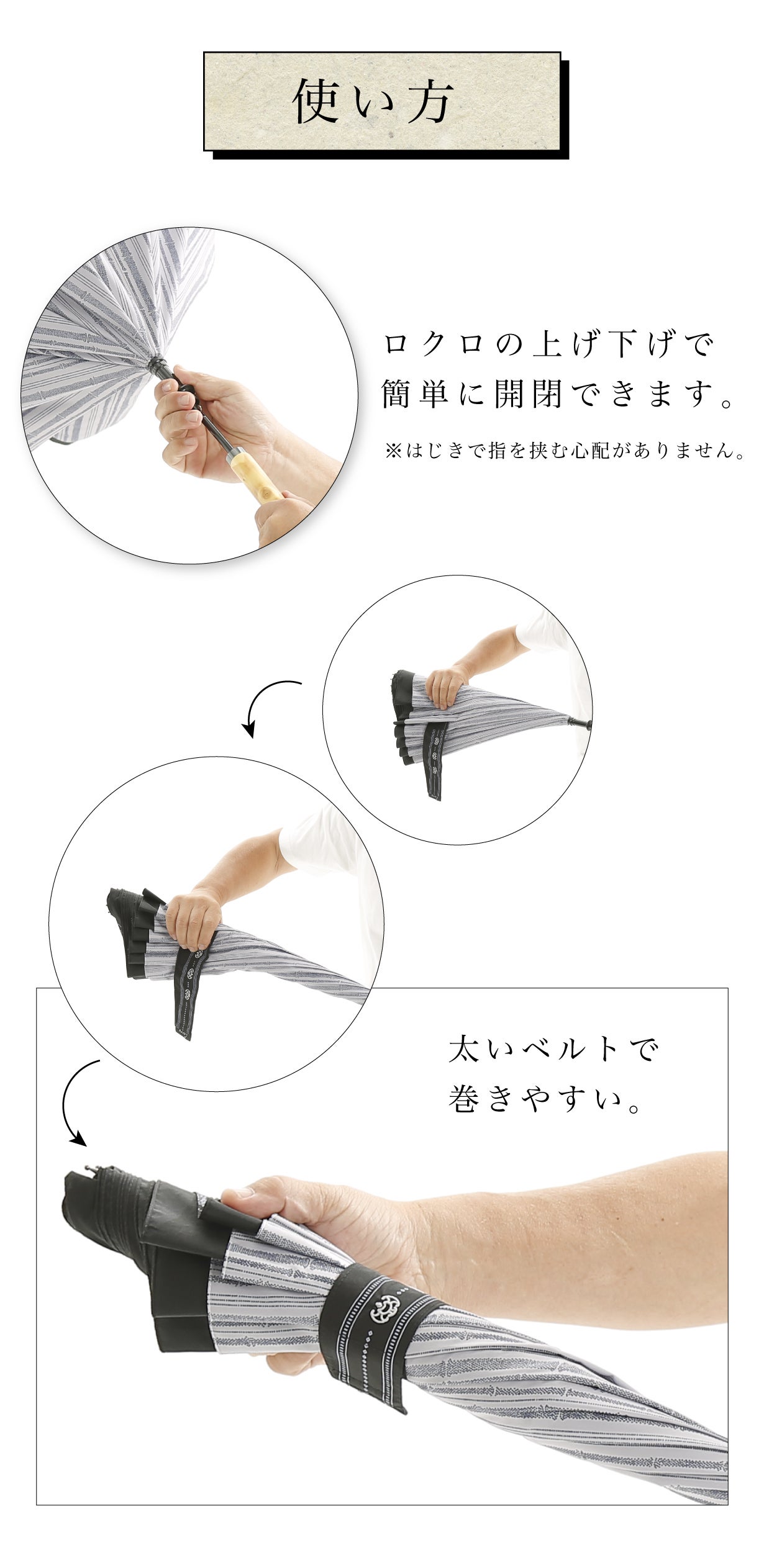 雨の不快感を取り除くだけでなく、ファッション的にも楽しめ、機能的にもガジェット的な楽しさのある傘。絵のような柄や繊細な色合い、時にファッションファブリックを使い、持ち手やボタンの細部にまでこだわる。1つ1つのモデルのデザインの背景には独自のストーリーがこめられています。