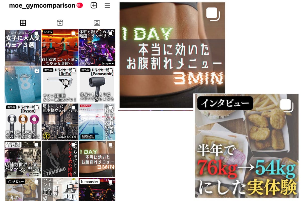 これらで得た知識を生かし、8月にフィットネスジム比較をメインとしたインスタグラムアカウントを開設しました!