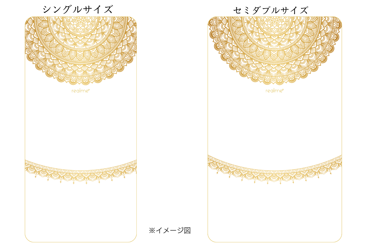大きく描いた金色の曼荼羅アートは壮大なパワースポットです。その上で優雅に眠る感覚を味わい、心の健康を養っていただきたいと思います。