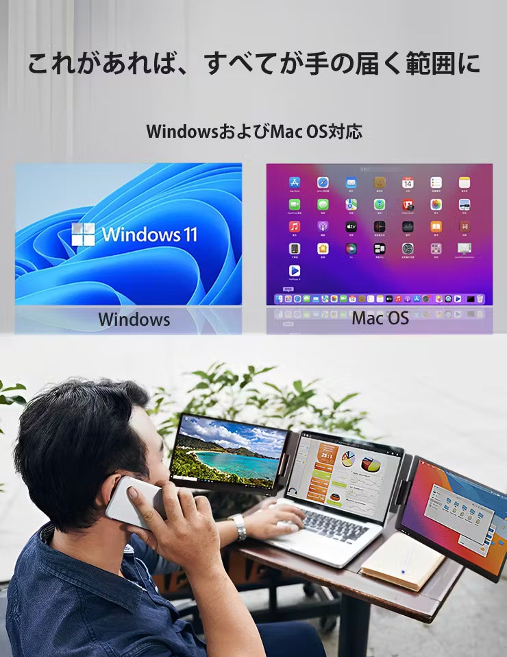 どこにいてもデスクトップ並みのパフォーマンスを実現するポータブルデュアルモニター