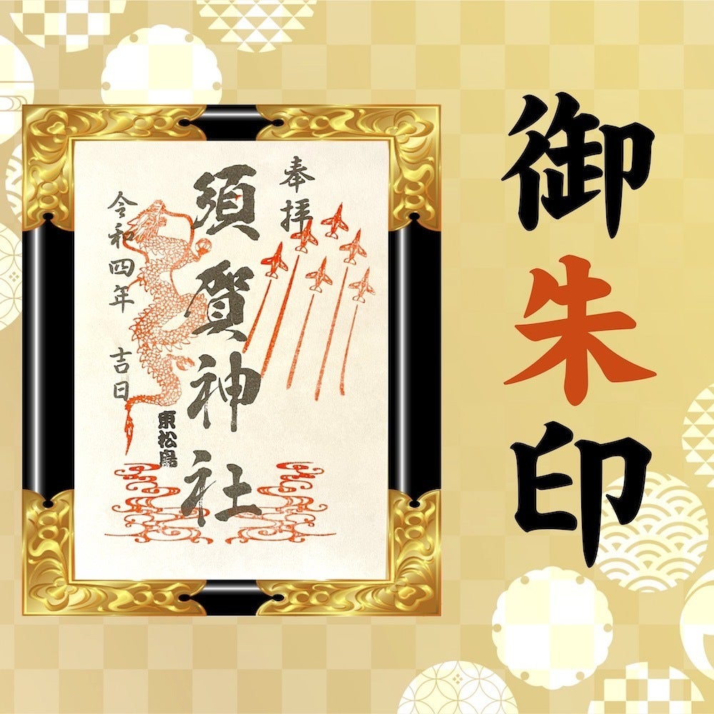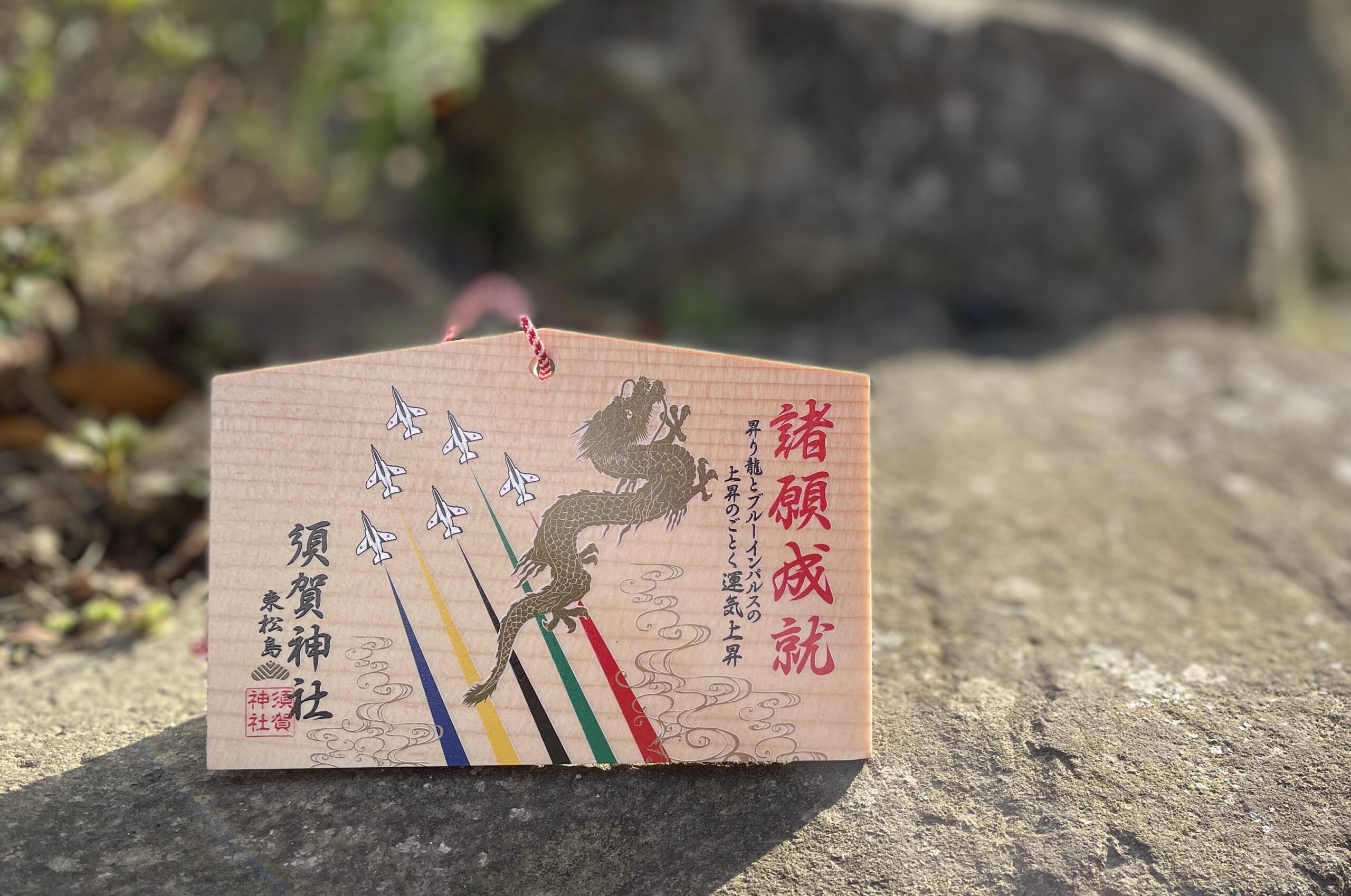 また、須賀神社がある東松島市・矢本はブルーインパルスが所属する航空自衛隊松島基地があり、航空ショーが間近で見られることから「昇り龍とブルーインパルスで運気上昇!」と謳いPRしています。