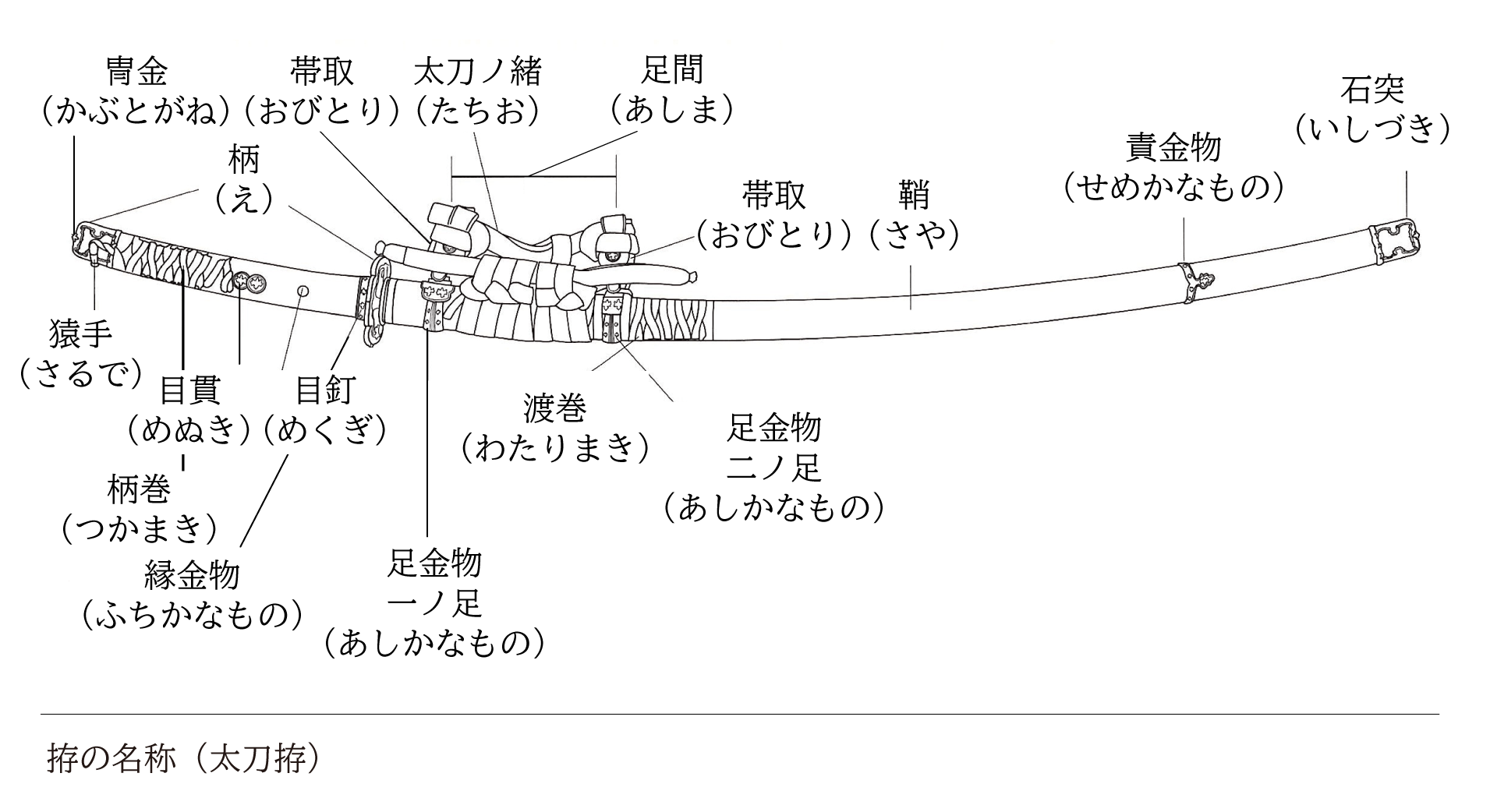 拵とは、刀身を納める鞘(さや)、茎(なかご)を納める柄(つか)、手が刀身の方へ滑らないように施す鍔(つば)などの金具や塗りが施された刀装具であり主に外出用、白鞘は、ホオノキ(朴の木)によって作られた外装であり通常保管用で用いられます。人の服装では、拵は外出用のお召し物、白鞘は普段着と例えられることもあります。