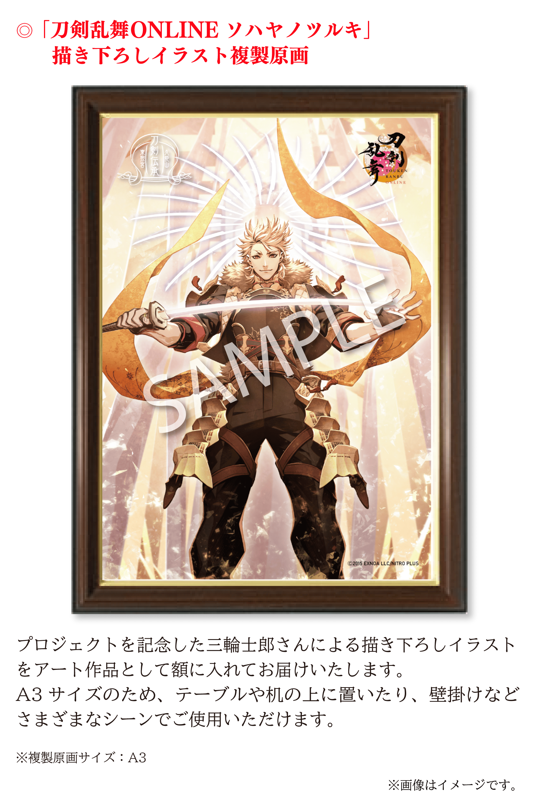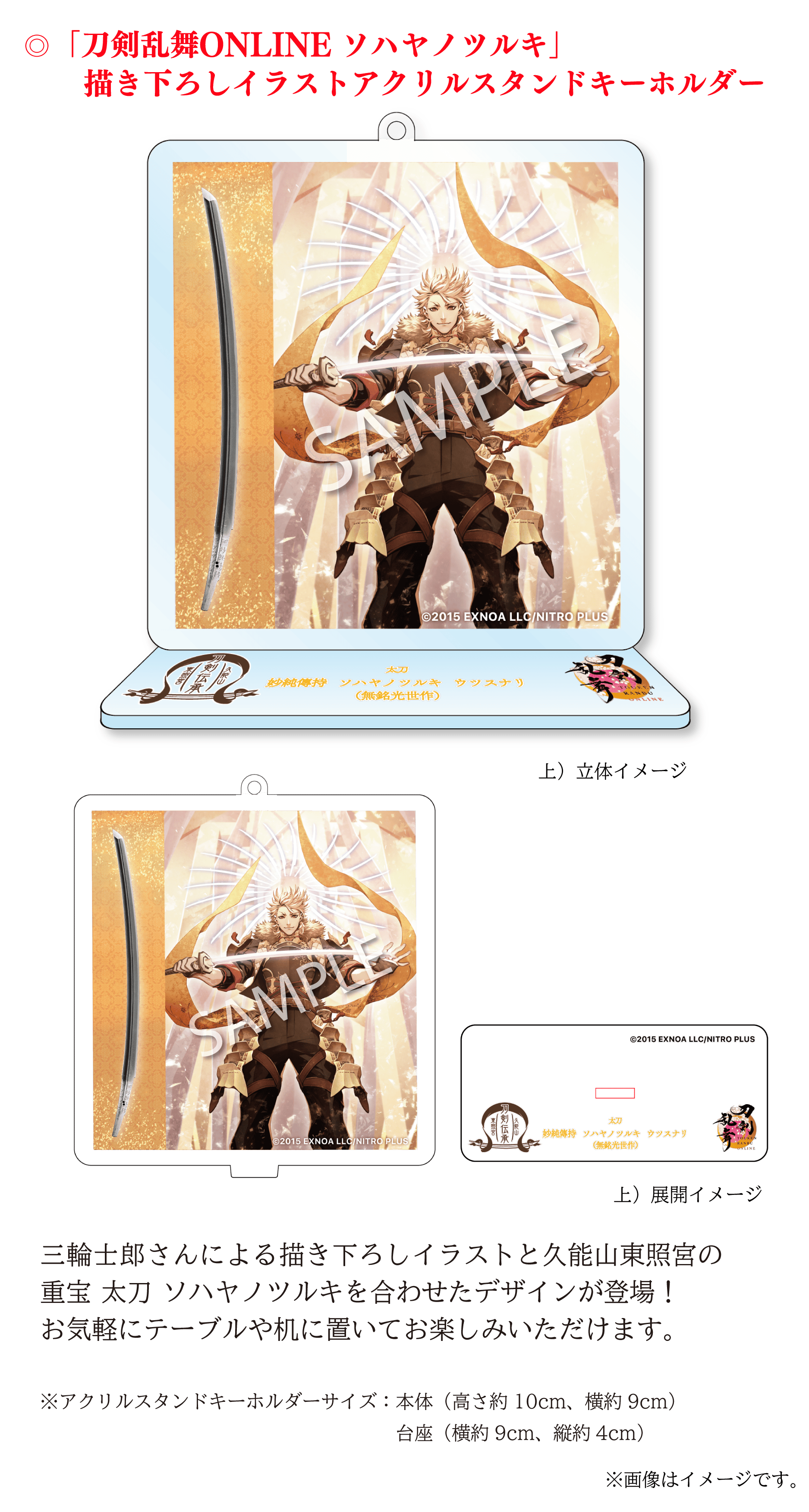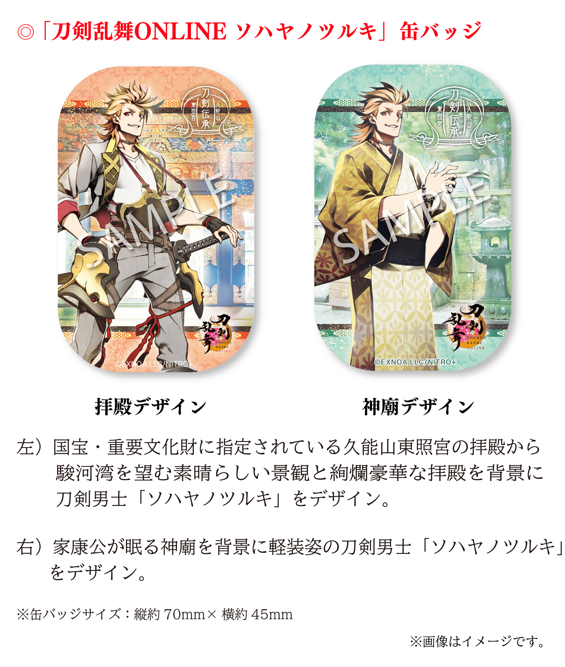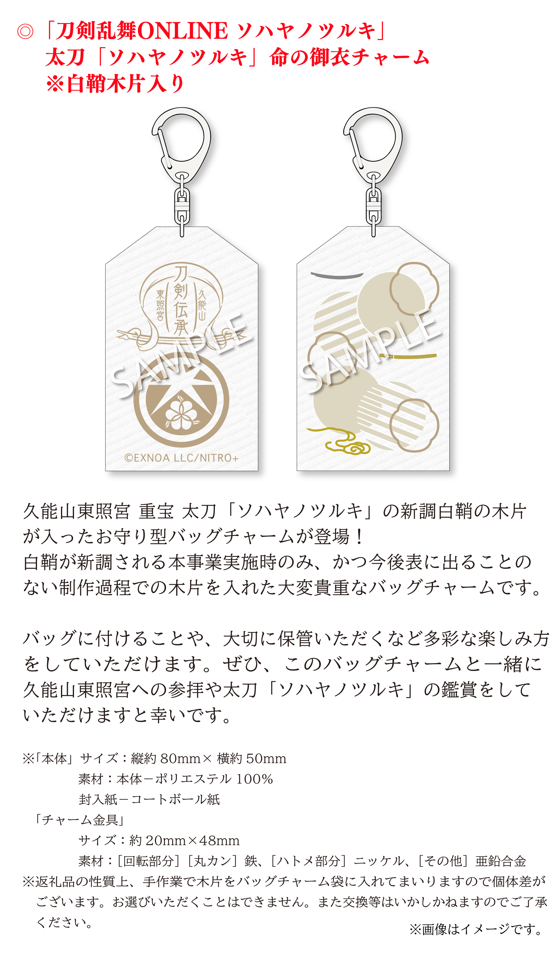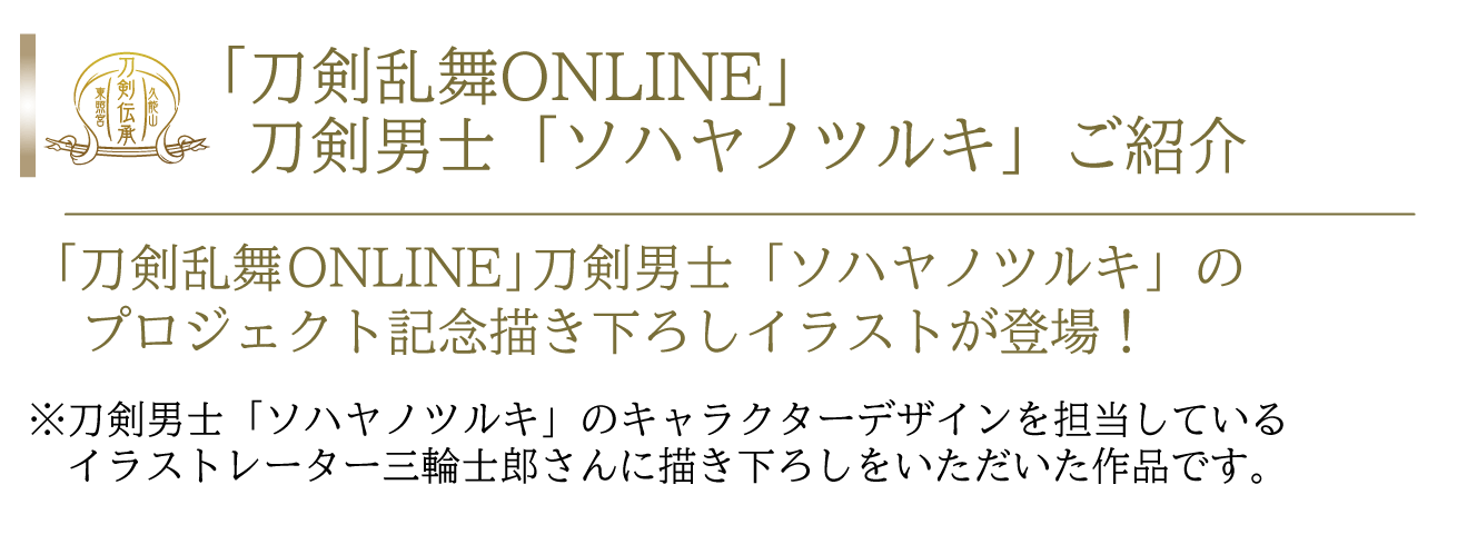 「刀剣乱舞ONLINE」は、数々の名刀から刀剣男士という戦士を顕現して、歴史を守るために戦うというゲームですが、 その刀剣男士の1振りとして「ソハヤノツルキ」が登場します。この刀剣男士は、久能山東照宮様が所蔵される重要文化財の「太刀 無銘 光世作(ソハヤノツルキ)」をモチーフとしております。キャラクターとして名前を使わせていただき、コラボレーションなどを通して作品に寄り添っていただいているご恩や、ソハヤノツルキを大切に維持や管理されていることへの敬意の気持ちから、我々にできることで恩返しをさせていただきたいという想いが常々ございます。