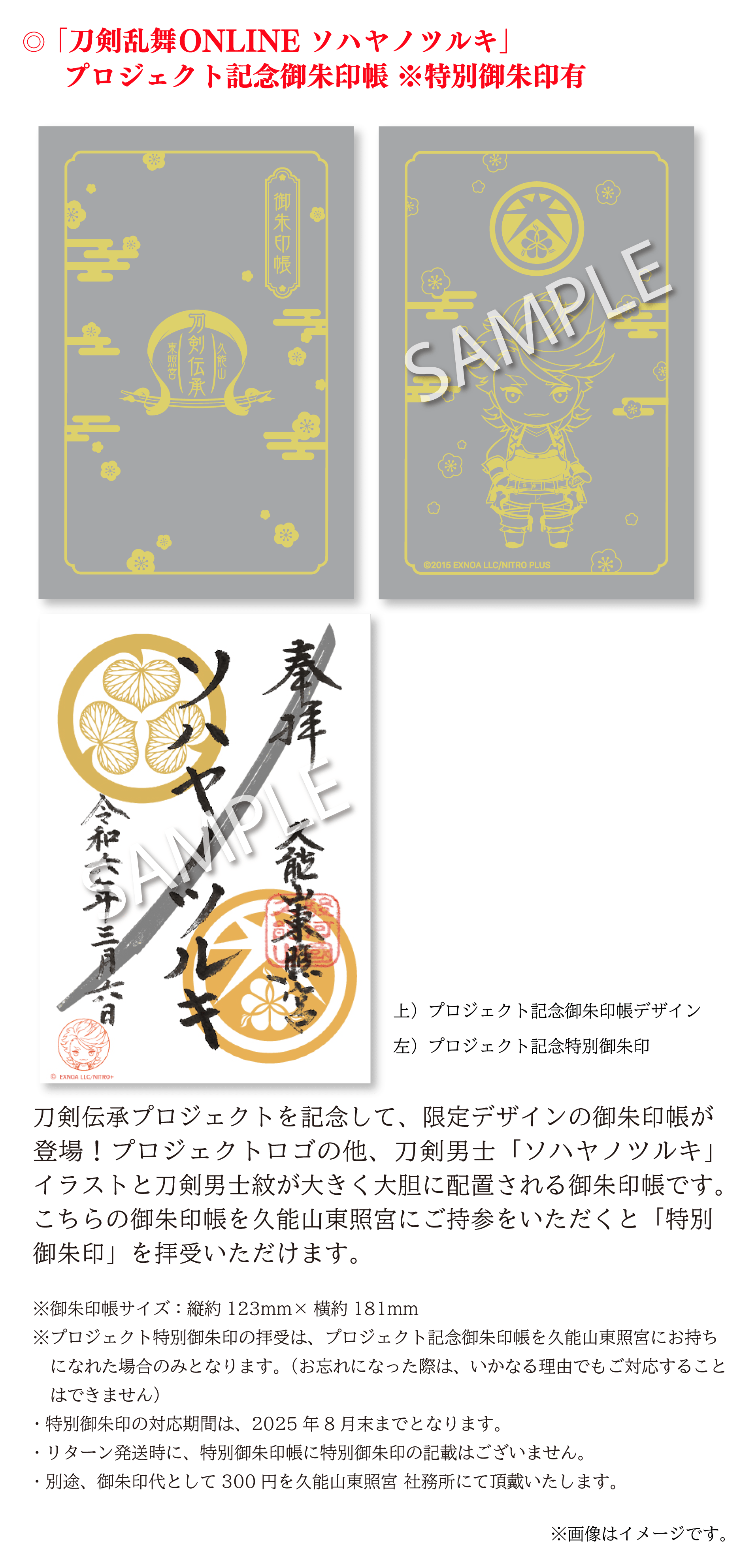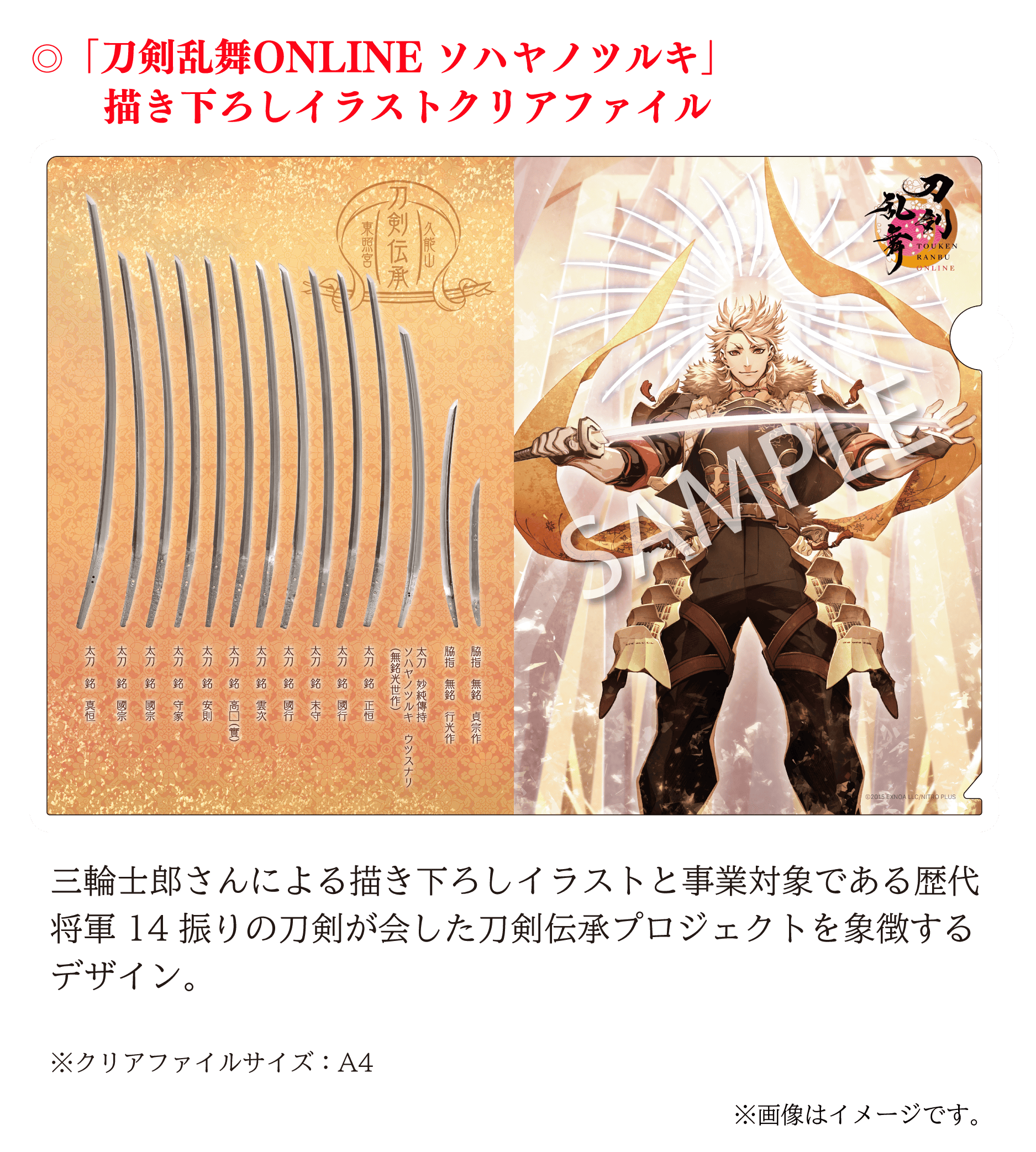 そして、本プロジェクトは、2017年12月に実施をいたしました久能山東照宮「刀剣修復プロジェクト」に続いて、『刀剣文化の発展及び文化財を後世につないでいく』という主旨に共感する刀剣育成シミュレーション・オンラインゲーム「刀剣乱舞ONLINE」のご協力をいただいております。