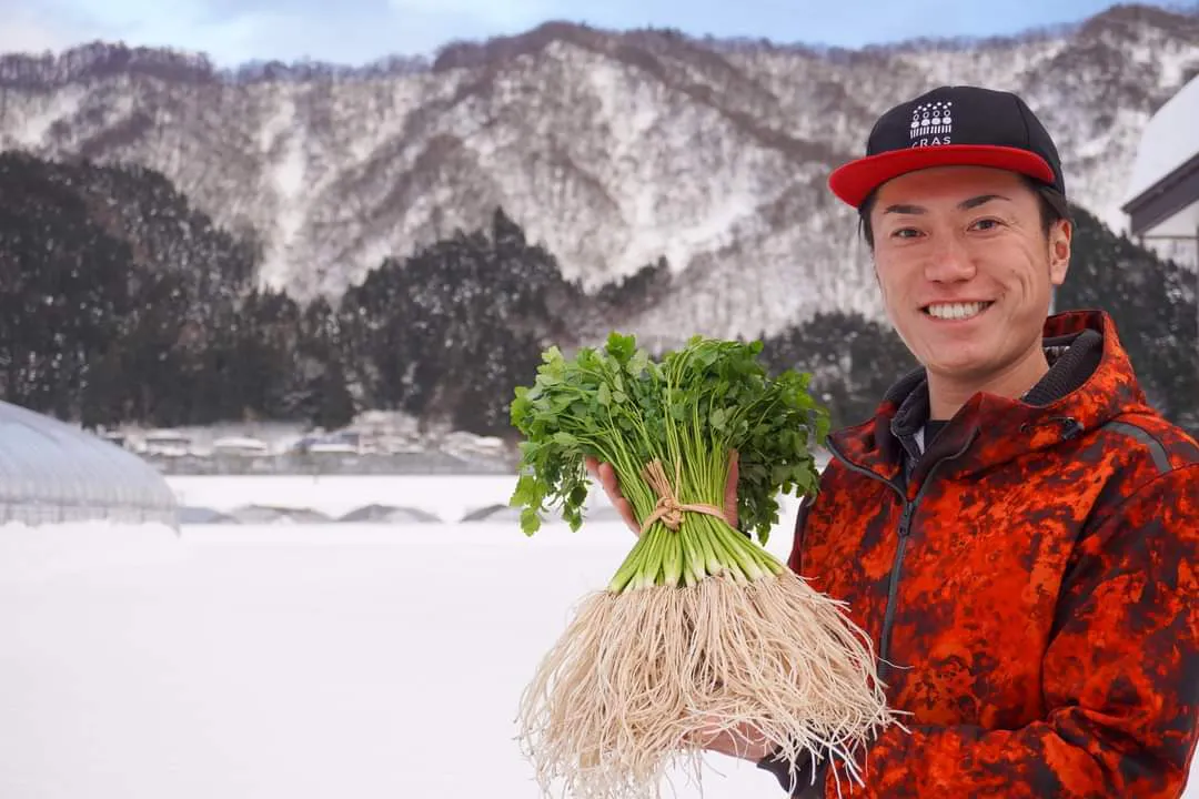 奥山家20代目として生まれ、先祖代々受け継いできた「秋田県伝統野菜”三関せり”」約300年の伝統を次の世代へ繋ぐために、2018年、総務省で新たに始まった「ふるさと納税起業支援事業」を活用し、2019年4月1日、地域の若手30代3名で起業。