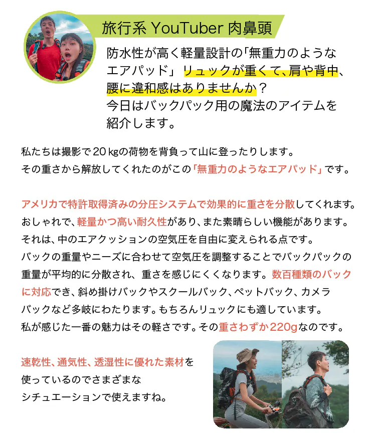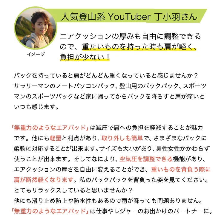 2013年奈良県の大学を卒業後、大手コンビニエンスストアに就職2015年退社し、個人事業主として物販の道へ2020年に物販会社を設立し、今に至る。今回のAir-onは、私自身、登山するにあたりとても利便性を感じた商品で、もっと多くの人に利用してもらいたいと思い、個人での挑戦になります。