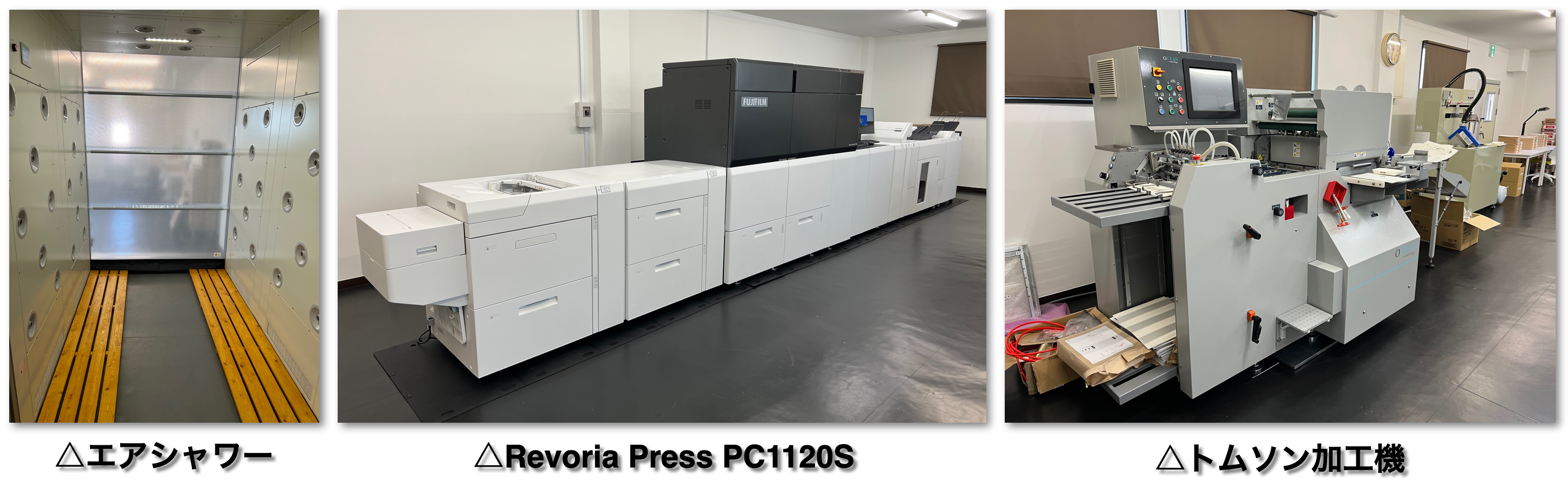 2022年12月、社内に新たにクリーンルームを新設しました。同時に、デジタル印刷機(富士フィルムビジネスイノベーション Revoria Press PC1120S)と型抜き装置(トムソン加工機 OT-SRP)の最新機を設置しました。1人でも多くの方のお役に立てられるようスタッフ一同、衛生的な環境下で丁寧な製造をさせていただいております。