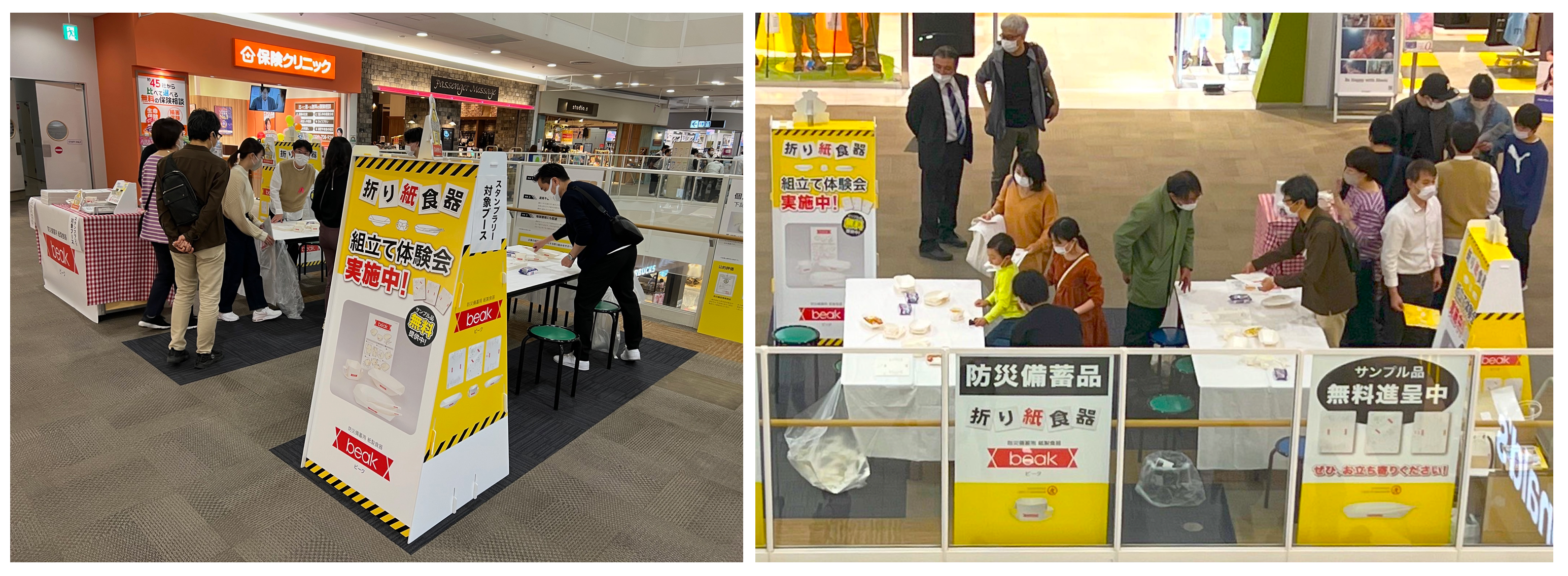 私たちは「折り紙食器 beak」を通して、これまで多くの自治体や有志の方々と防災イベントに参加して参りました。実際に多くの方々の手に触れて組み立てていただきまして「折り紙食器 beak」の機能性に感動していただいております。