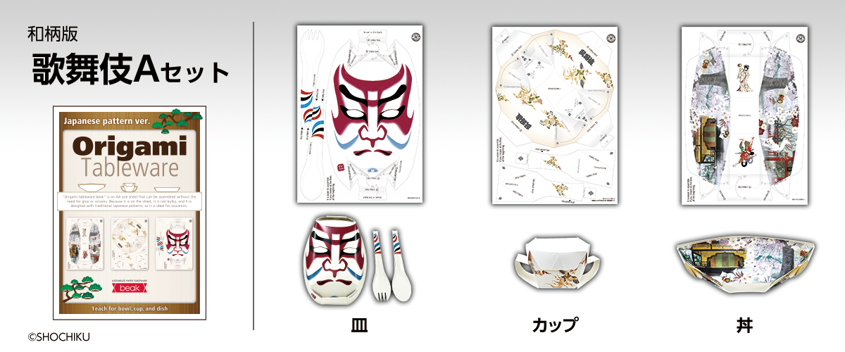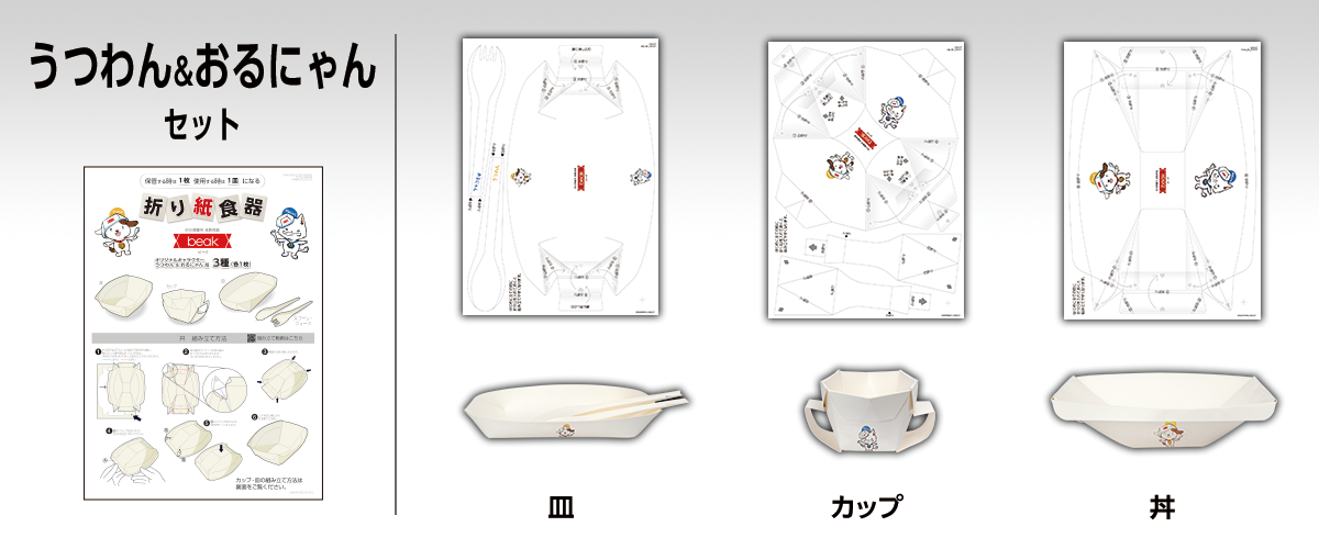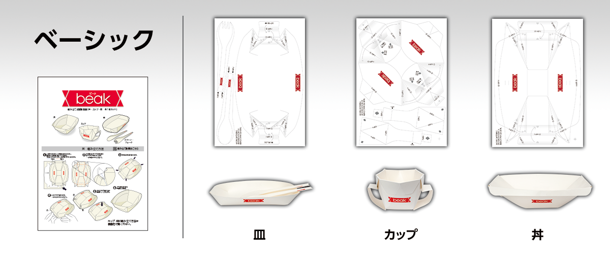3種類の「折り紙食器 beak」をご用意しています
