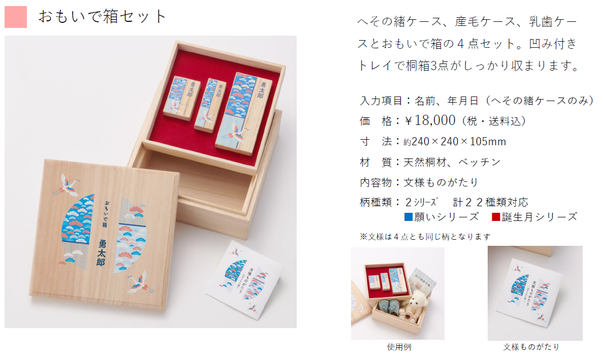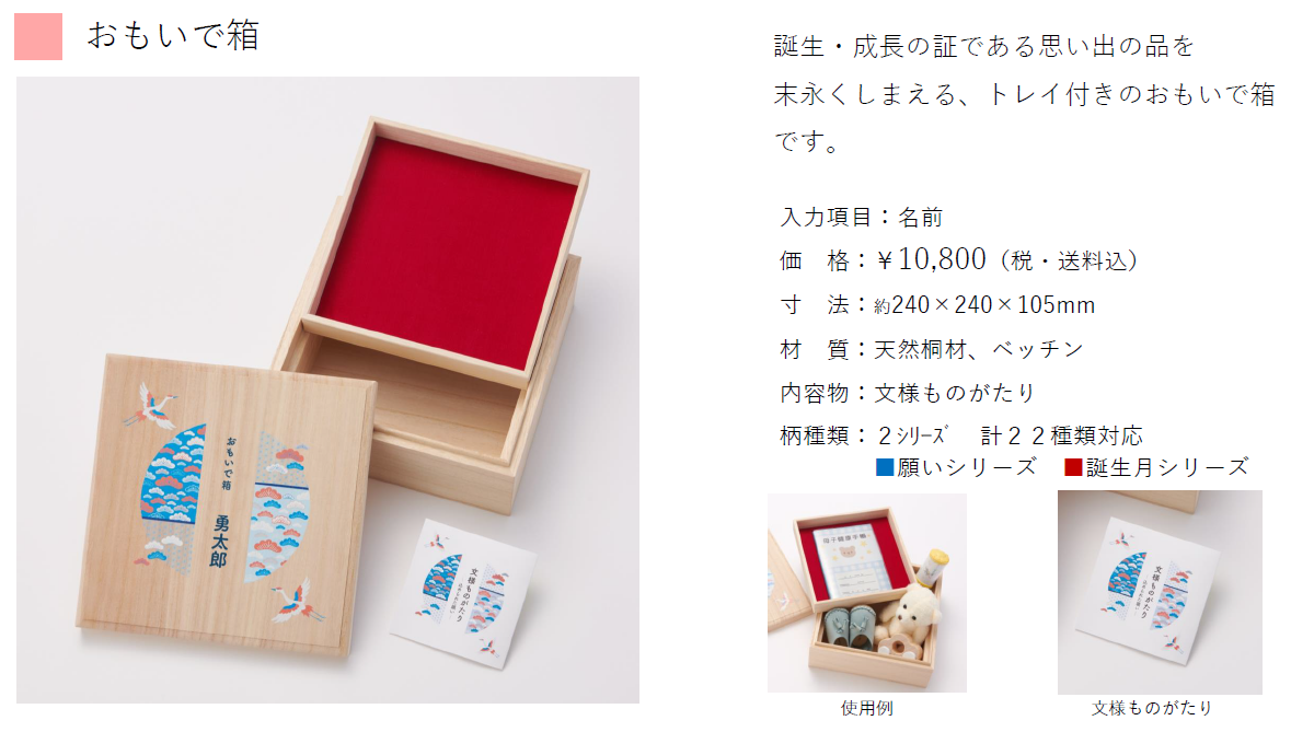 そんなかけがえのない幼い時の思い出の品を大事にしまっておける桐箱シリーズです。