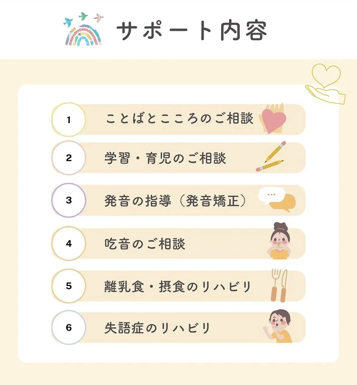 ことばの支援はできるだけ早く、継続的に受けることが大切です。