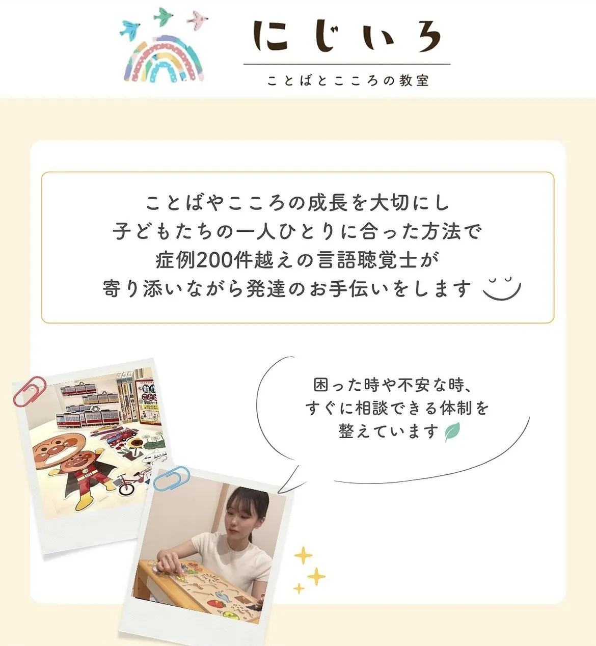 国家資格である言語聴覚士によることばの相談室【 ことばとこころの教室 にじいろ 】を運営しています。