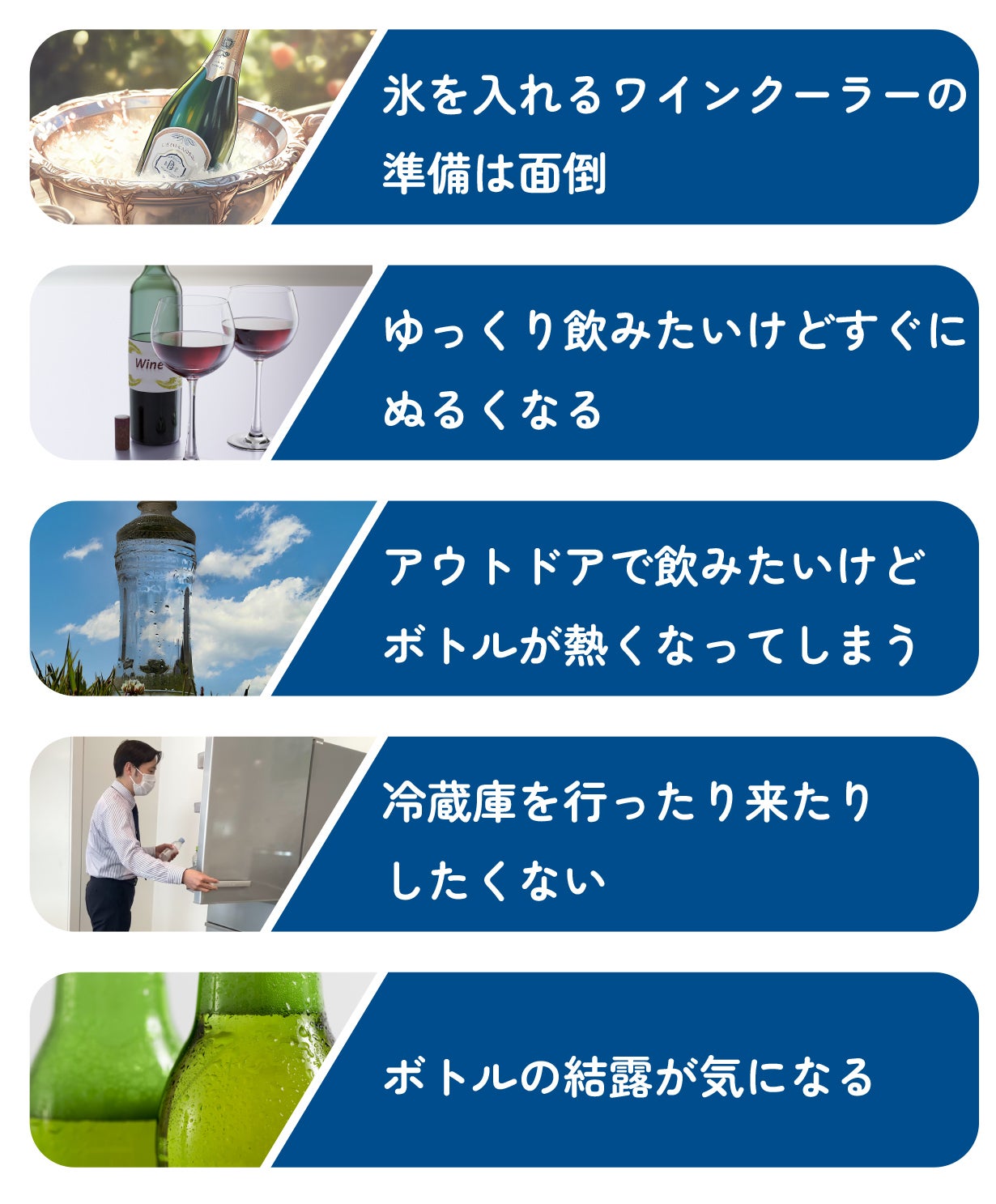 ボトルクーラーで面倒な氷の用意は不要!