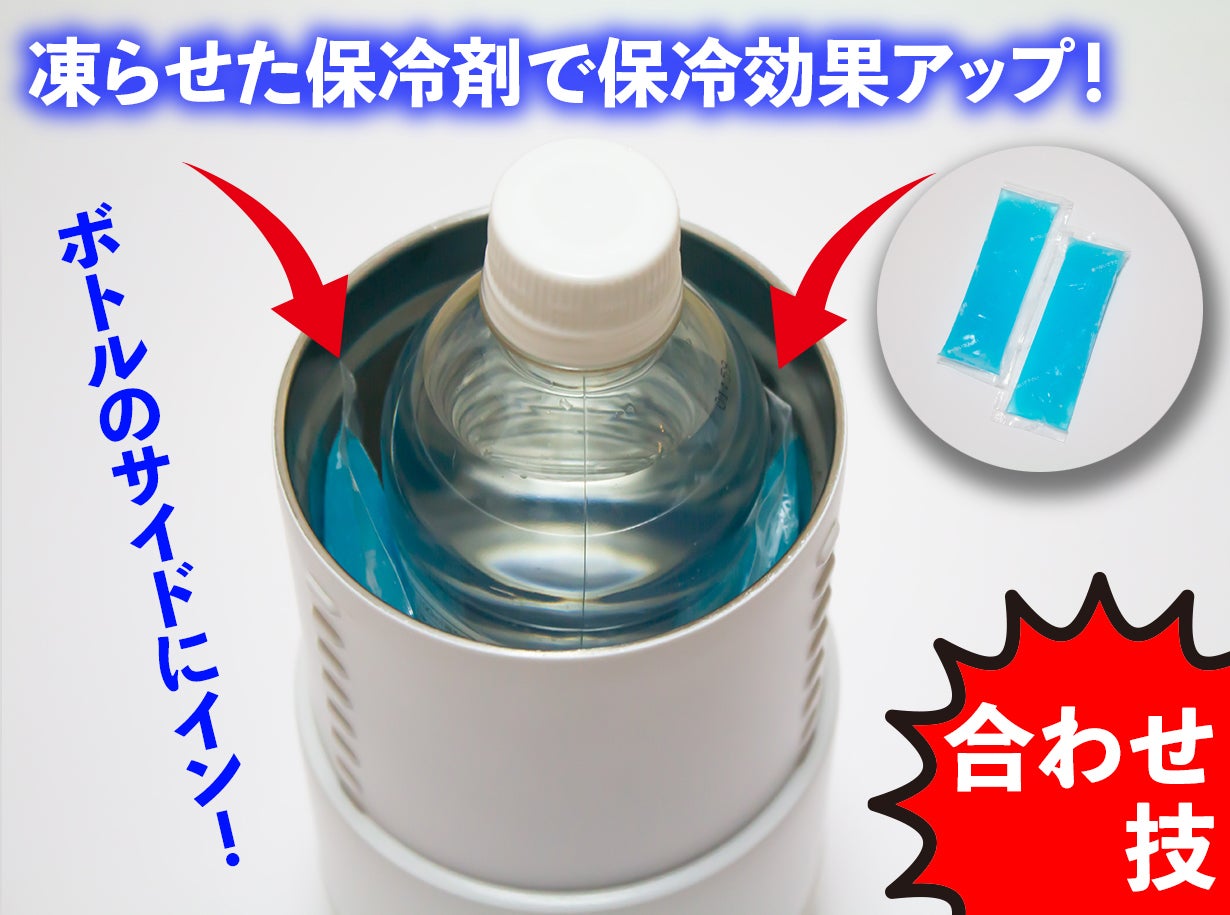 特に屋外ペットボトル使用時にはオススメの"保冷剤プラス"で保冷時間アップ!