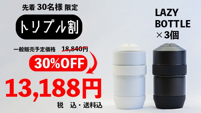 ※お届けするリターン品のLAZY BOTTLEにはオリジナルデザインのLAZY BOTTLEロゴがプリントされた製品をお届けいたします。