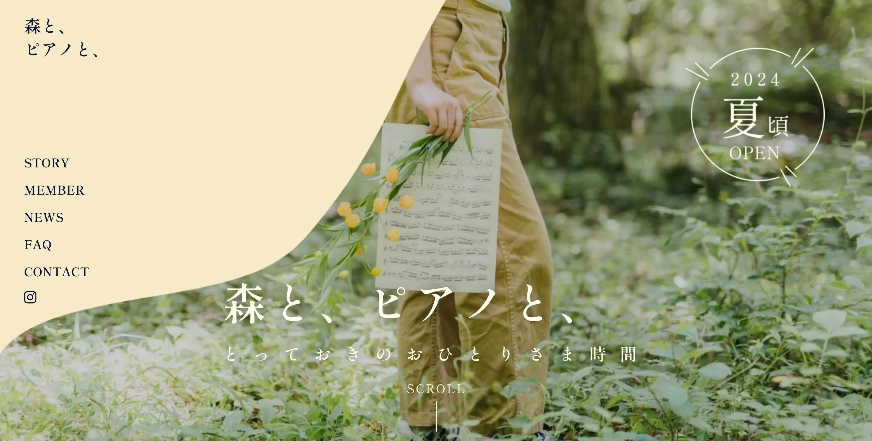 株式会社クリエスタにご協力いただき、「森と、ピアノと、 」の世界観をたっぷり詰め込んだWebサイトを制作いたしました。