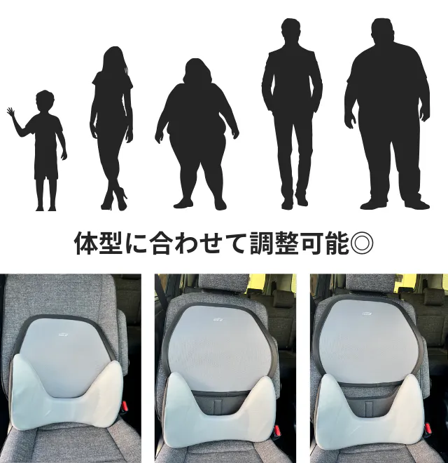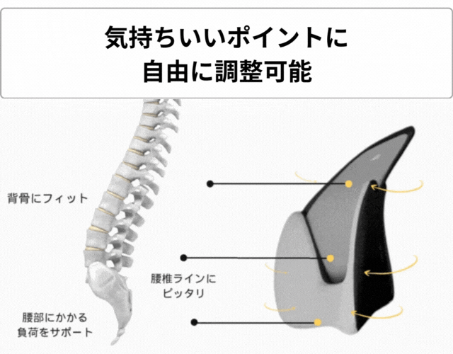 あなたに最適なポジションで腰と背中をプッシュしてくれるので、自然な姿勢を保ちやすくなります。