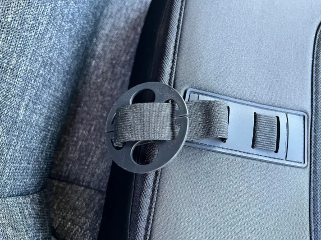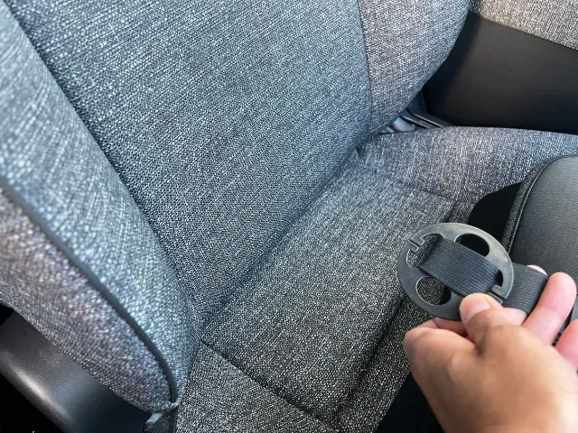 こちらの固定クリップを座席の隙間に押し込むだけで取り付け完了。
