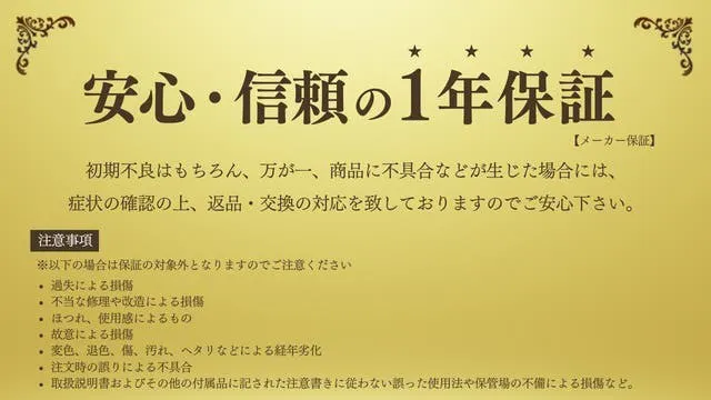 ・メーカー保証:商品受け取り日から1年間(初期不良のみ対象)