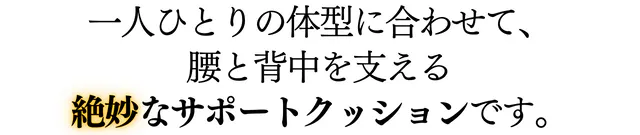 このサポートクッションを使用することで、背中を持ち上げるように支える程よい反発力を体験できます。