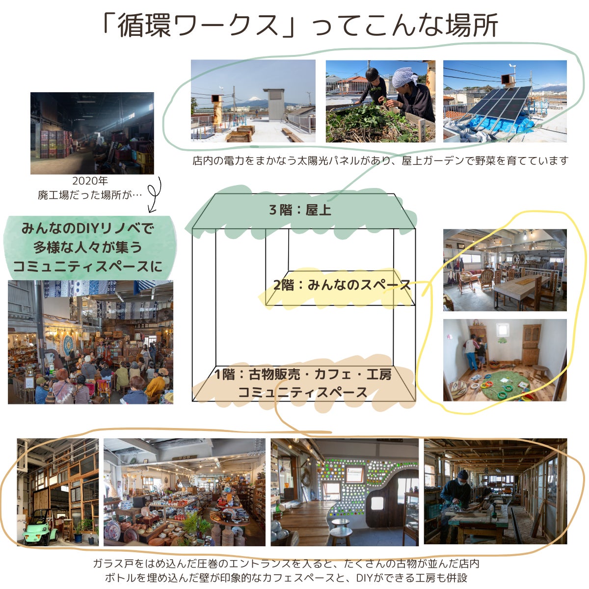 「循環ワークス」を始めて3年が経ち、たくさんの人の力を借りて工場を作り、コミュニティを育んできました。