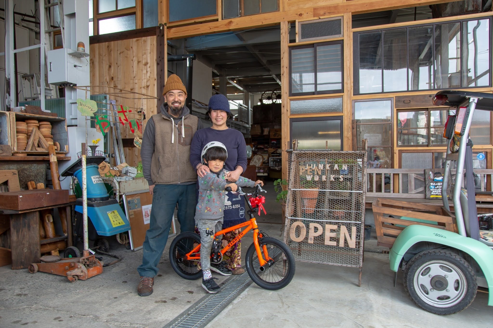 工場のオープン前から、DIYでリノベーションサポーターとして、寄り添い続けてきてくれたボータくん。20年前に、埼玉から沼津に移住し、沼津はすでに第二の故郷と言える場所に。循環型社会への想いに共感してくれて、いまでも工場のリノベーションや、古物を使ったアップサイクル品の制作など、工場を支え続けてくれています。