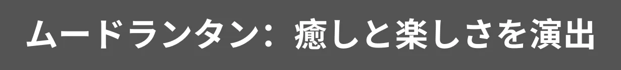 寝室であれば《暖色光》や《暖色ゆらぎ光》、キャンプ場であれば《キャンプファイヤー光》、パーティー会場なら《カラフル光》という風にシーンやシチュエーションに合ったモードをお選びいただけます。