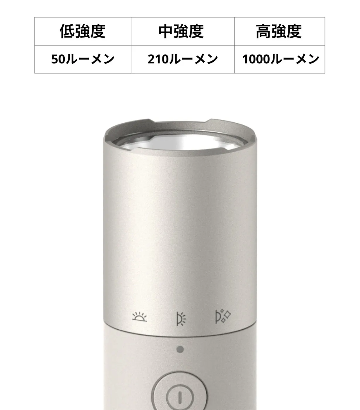 メインライトは低輝度:50ルーメン、中輝度:300ルーメン、高輝度:1000ルーメンとなっており、低輝度なら最長30時間も連続で点灯可能です。