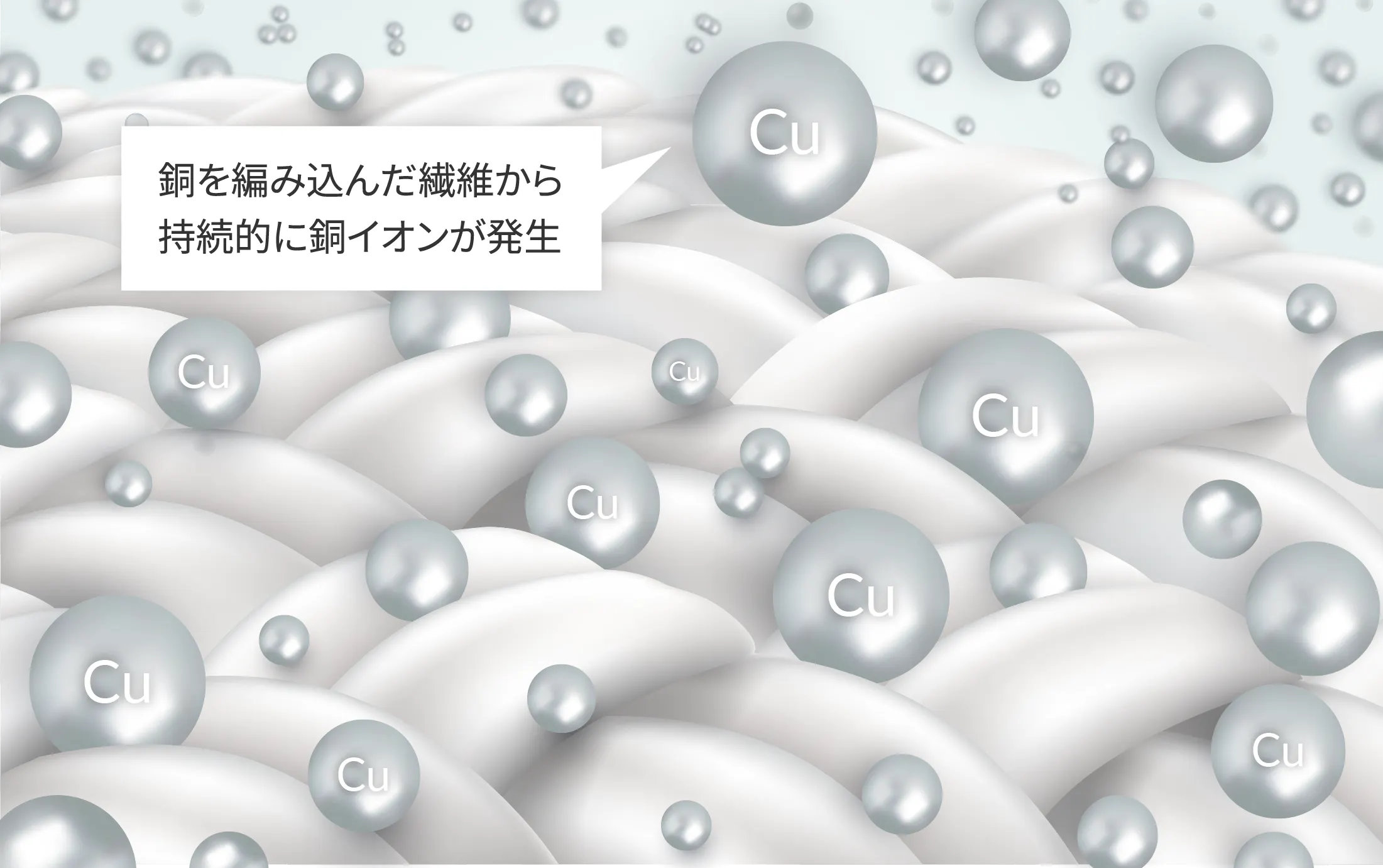 銅が水分に触れることで銅イオンが発生することで、様々な効果が発揮されます。