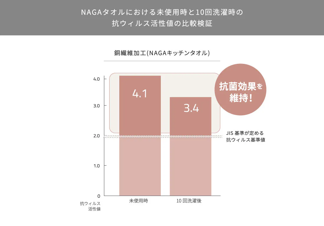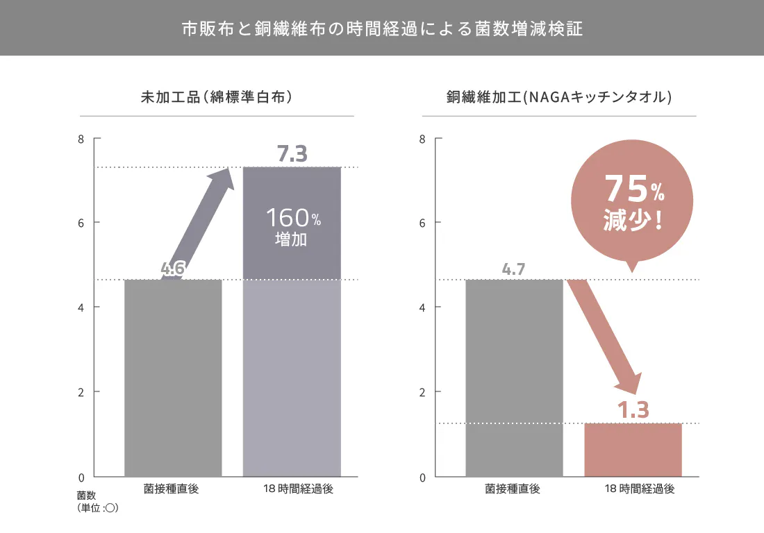 今回のキッチンタオルは、日常的に使う台所や水回りなどで活用できるので銅イオンの効果を十分に活用することができます。