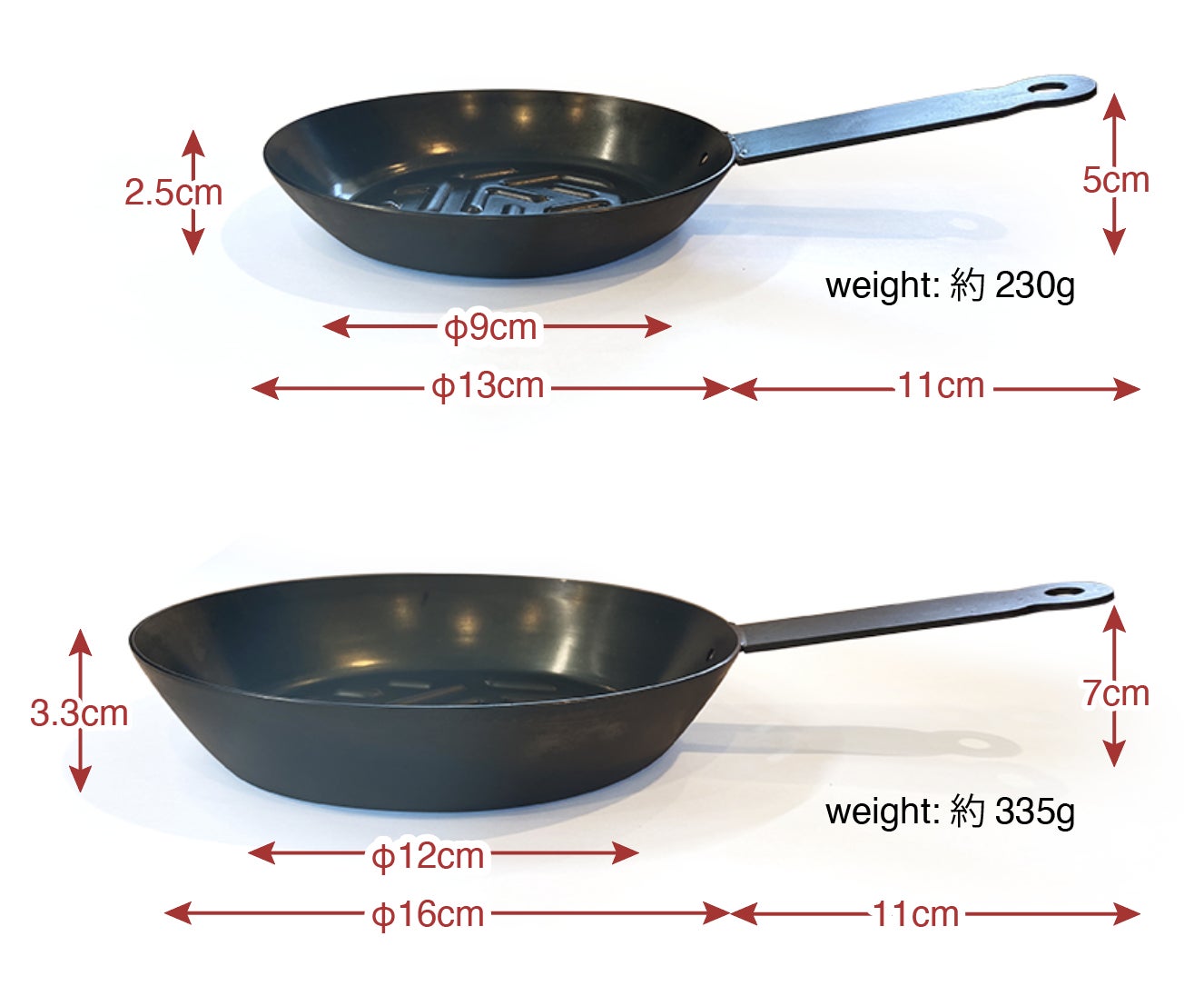 小さいから軽いのではなく、「独自加工」により軽量化に成功しました。鉄の特性そのままに「鉄は重い」というデメリットを極限まで解消しました。
